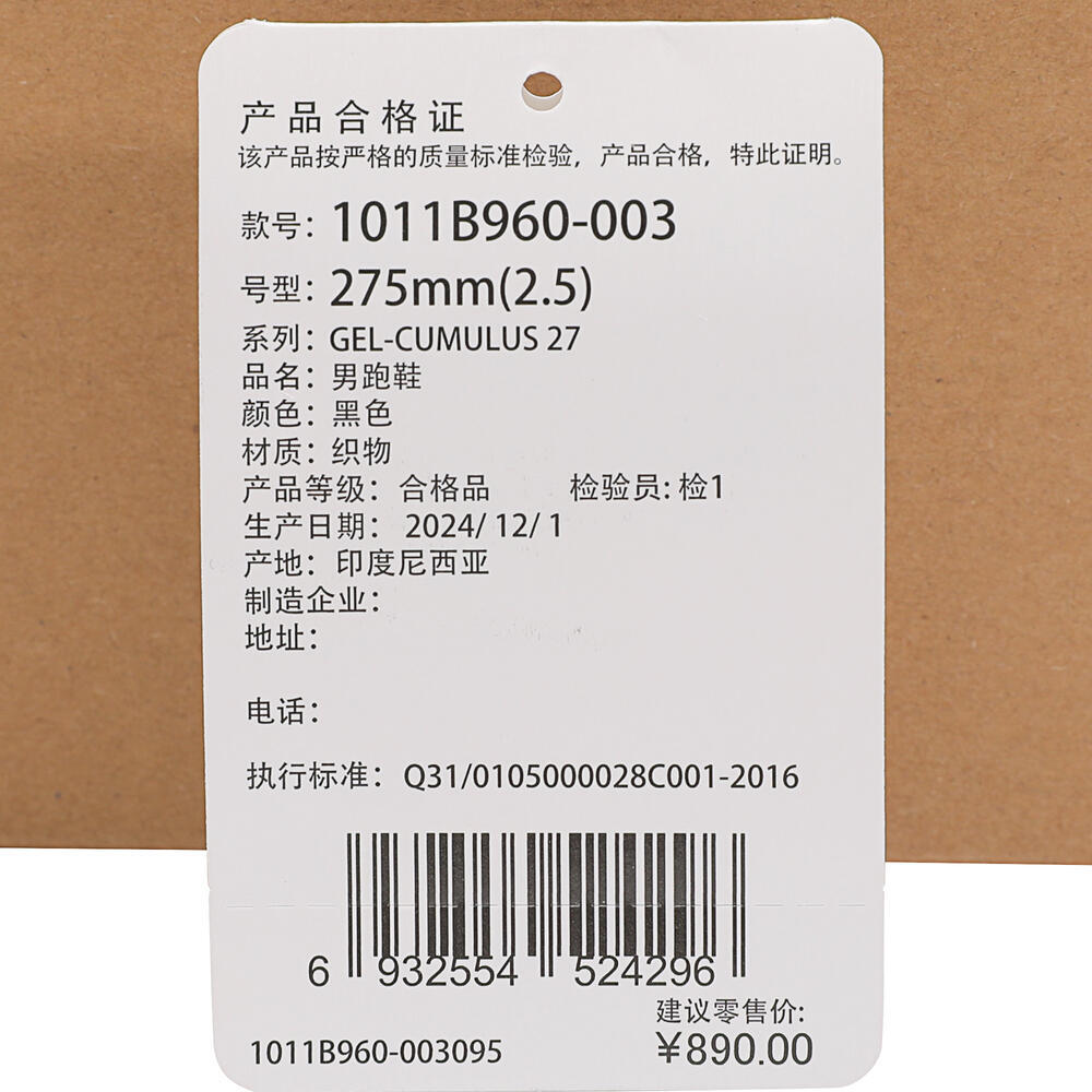 Asics亚瑟士2025男子GEL-CUMULUS 27CUMULUS1011B960-003