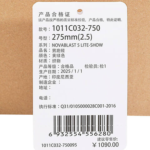 ¥1090品牌商建议零售价或牌价。