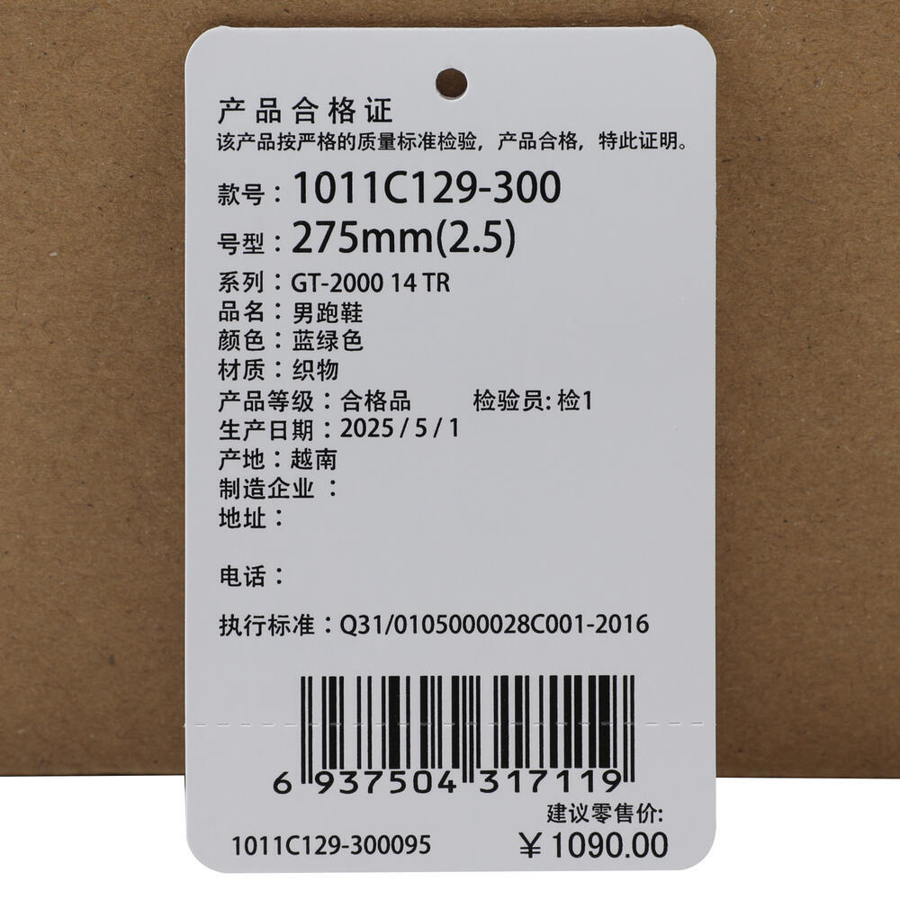 Asics亚瑟士2025男子GT-2000 14 TRGT系列1011C129-300