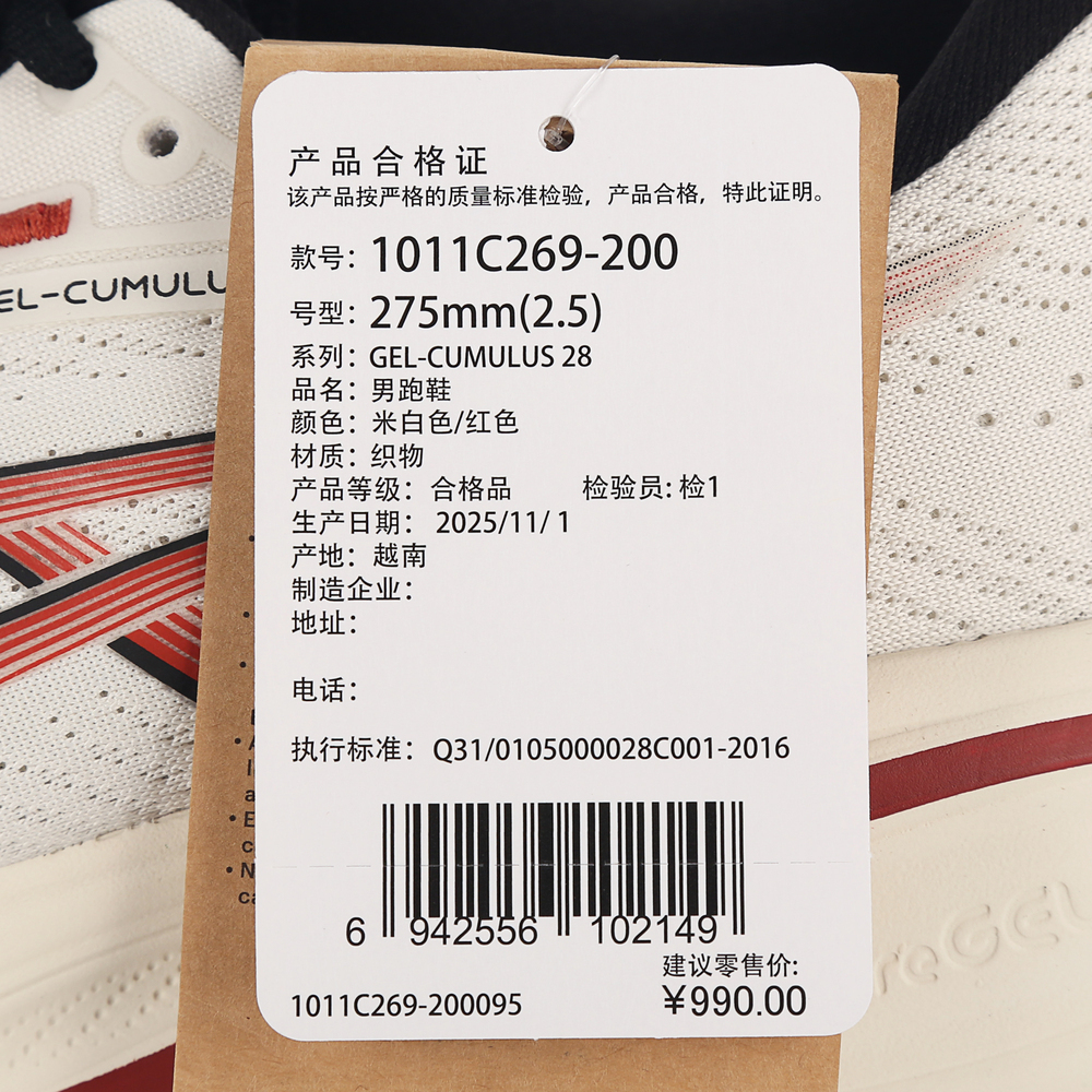 Asics亚瑟士2026男子GEL-CUMULUS 28CUMULUS1011C269-200