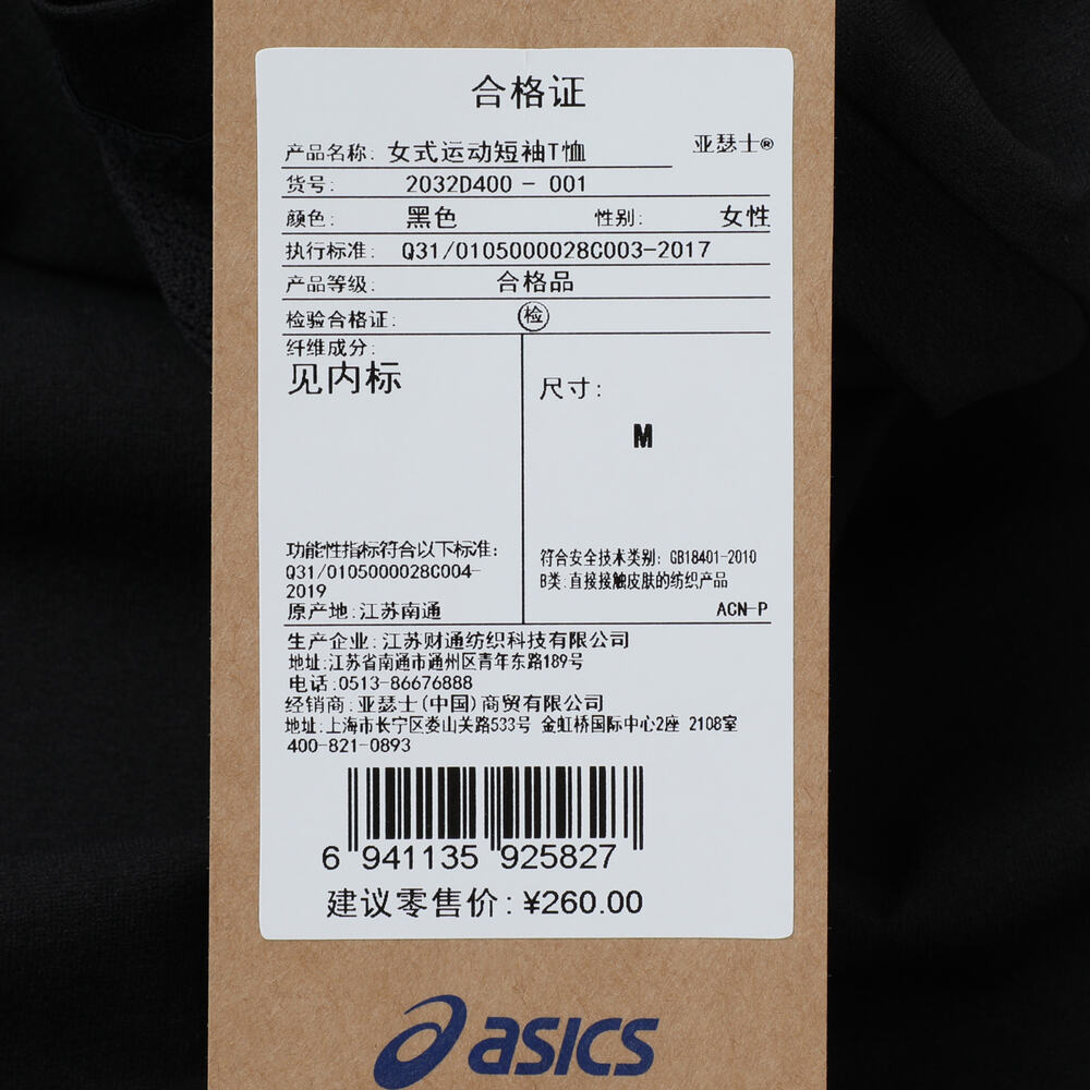 Asics亚瑟士2025女子女式运动短袖T恤梭织无领短T2032D400-001