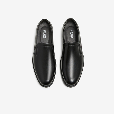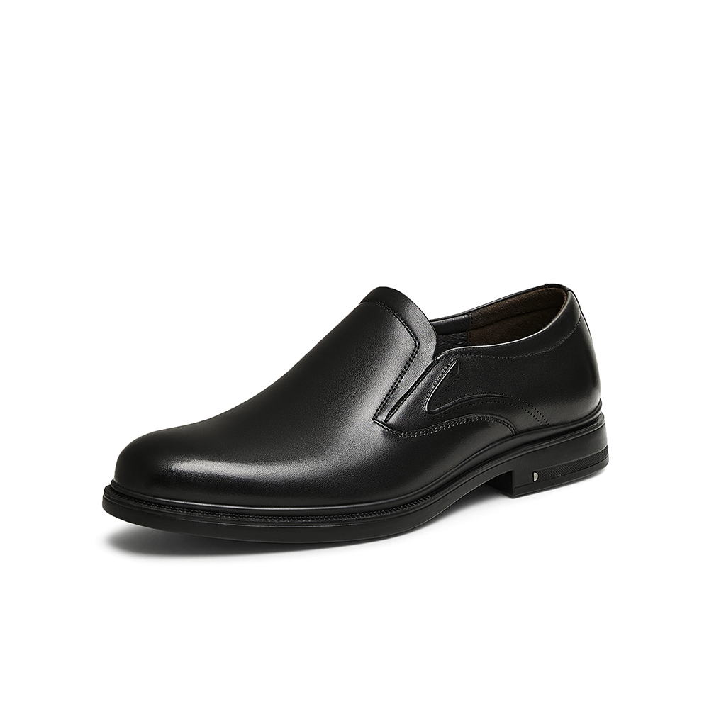 百思图2025春新款商场同款简约商务乐福鞋粗跟男休闲皮鞋22080AM5