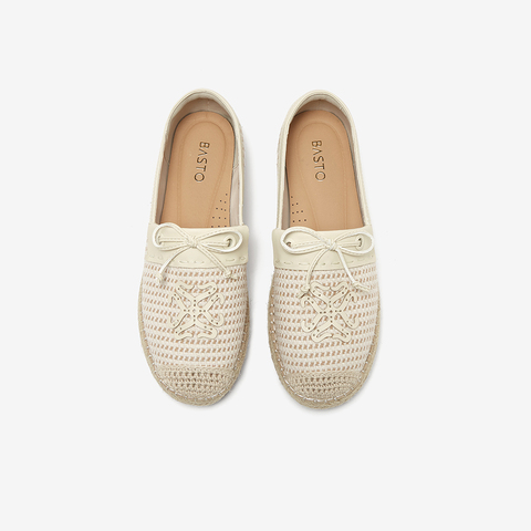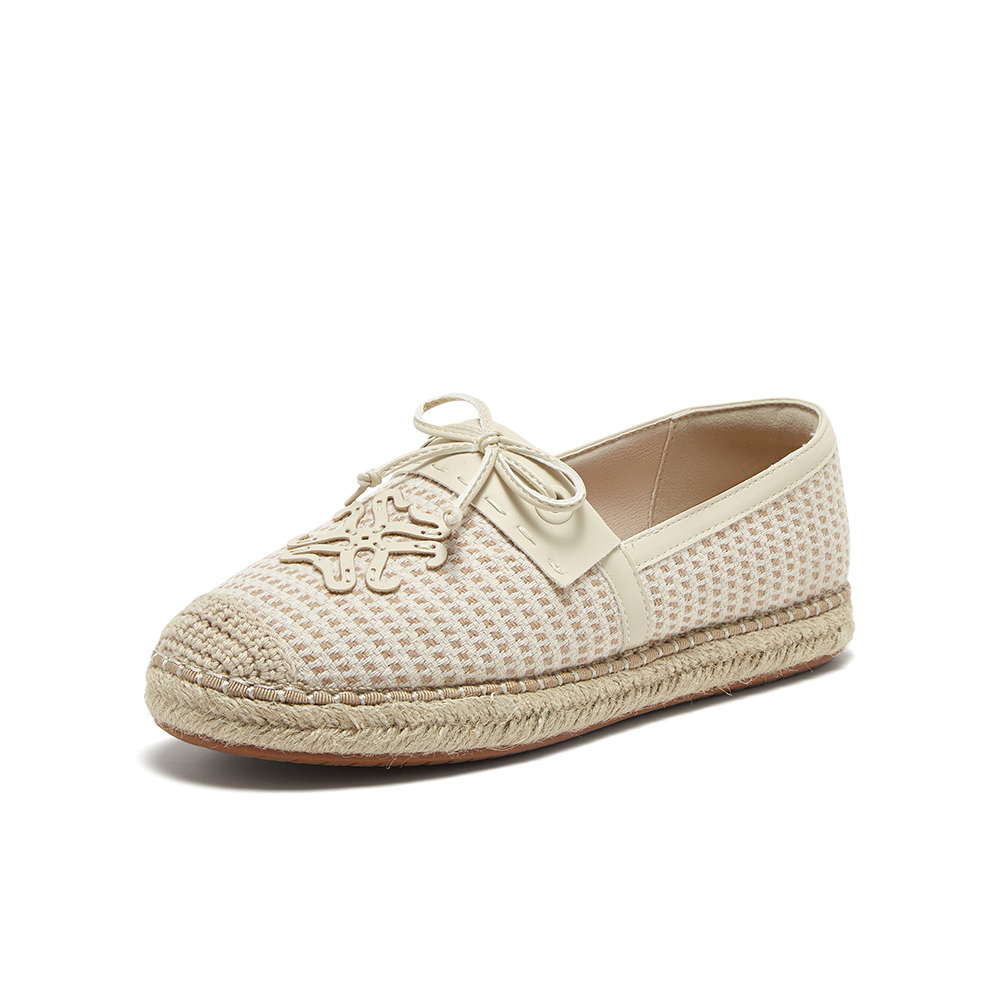 百思图2025春季新款简约蝴蝶结复古渔夫鞋平跟女单鞋A0202AA5