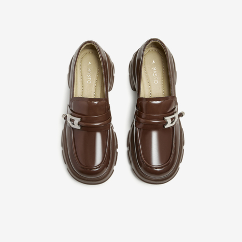 百思图2024秋季新款商场同款时髦学院乐福鞋粗跟女单鞋A2767CA4