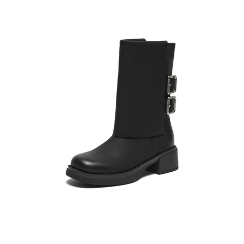 百思图2024冬季新款商场同款时尚街头裤管靴粗跟女短靴A5989DD4