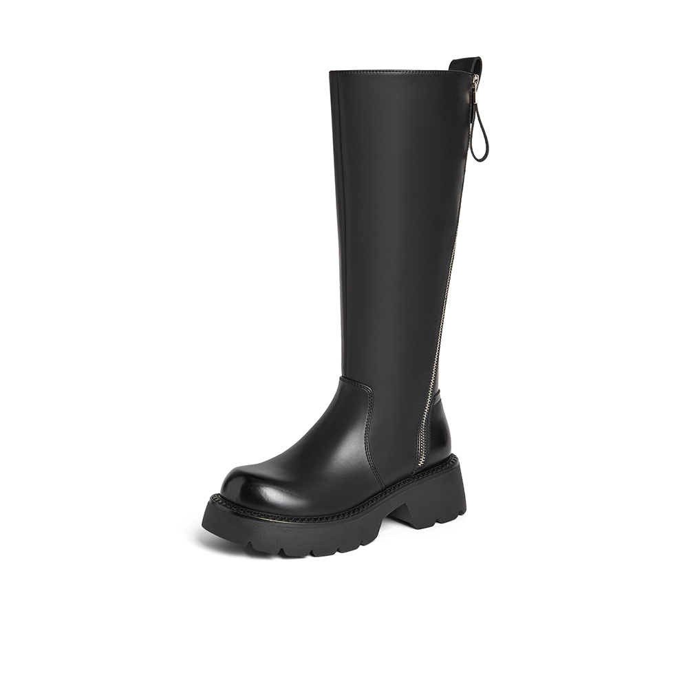 百思图2024冬季新款时尚户外街头骑士靴粗跟圆头女长靴A6115DG4