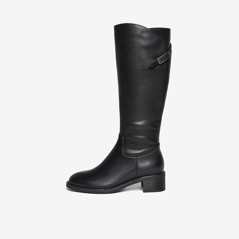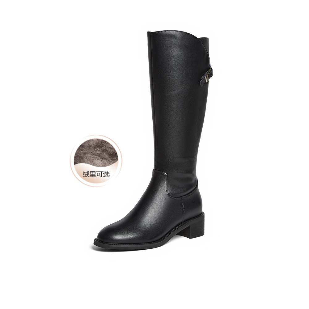 百思图2025冬季新款骑士靴时尚简约通勤粗跟女长靴AX892DG5