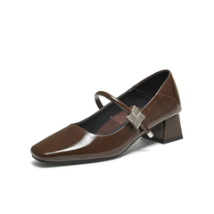 百思图2025秋季新款玛丽珍鞋时尚简约法式方头女单鞋B5287CQ5