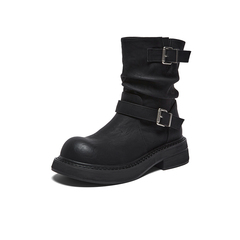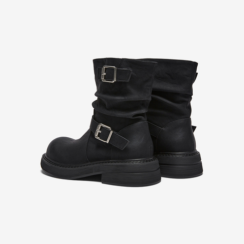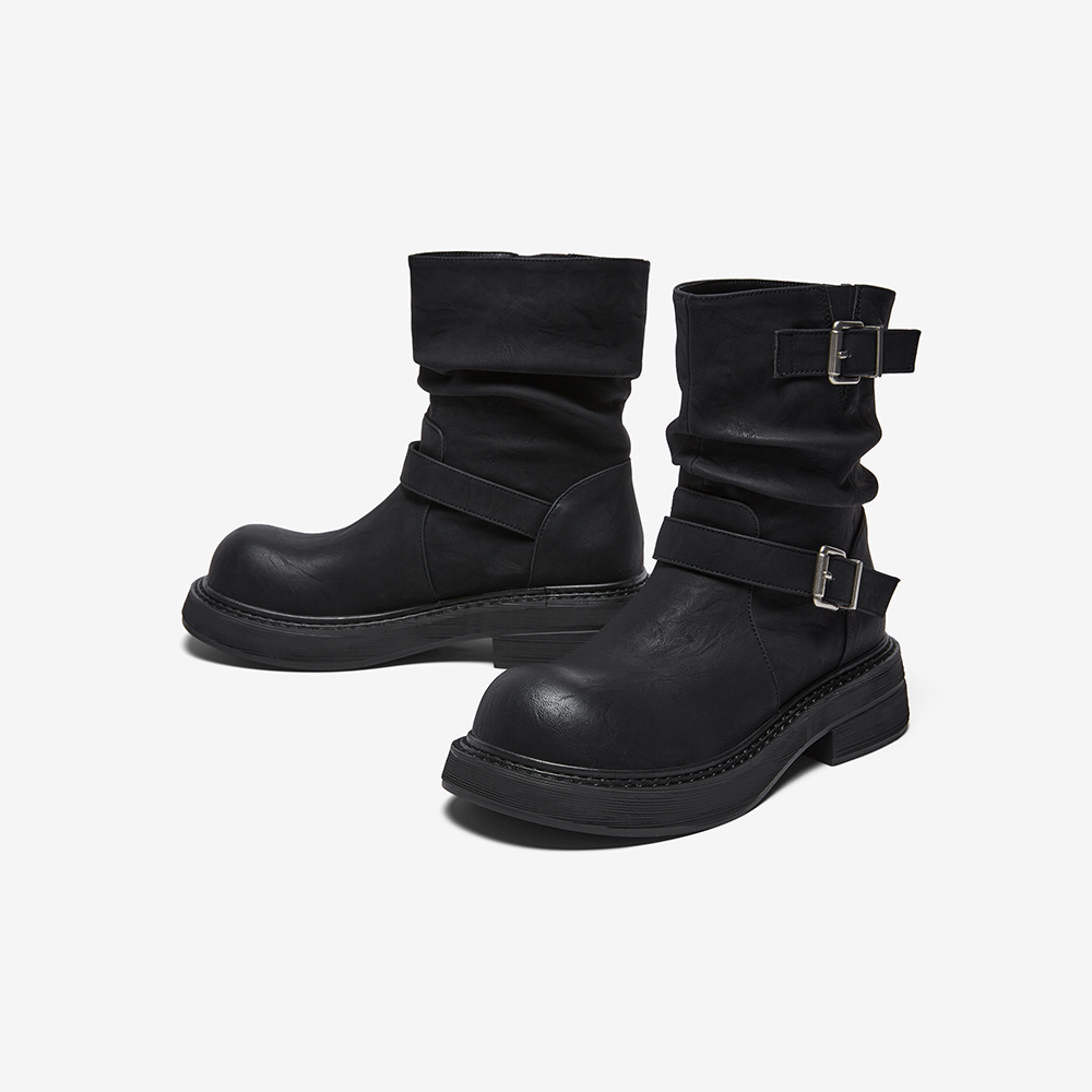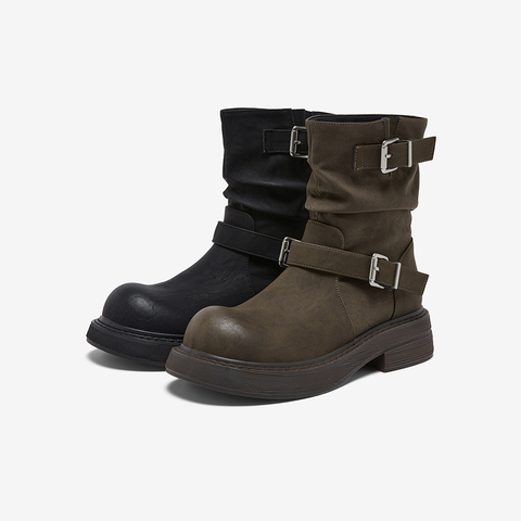 百思图2025冬季新款商场同款堆堆靴西部靴复古女中靴B8198DZ5