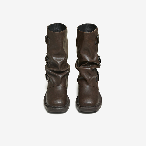 百思图2025冬季新款裤筒靴时尚潮流街头粗跟女中靴B8603DZ5
