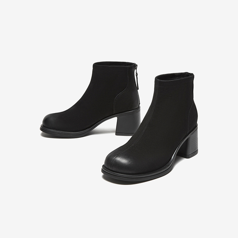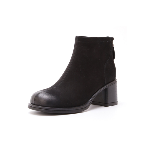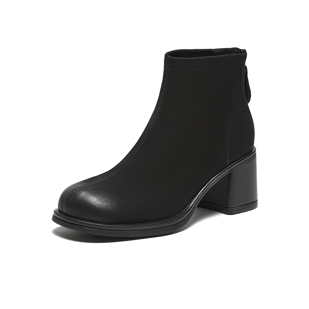百思图2024冬季新款商场同款简约潮流时装靴粗高跟女短靴BF521DD4