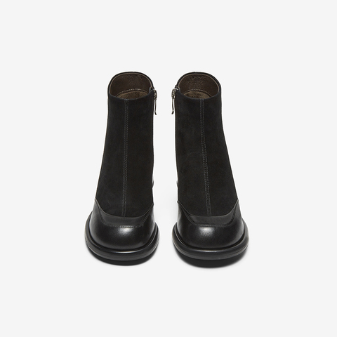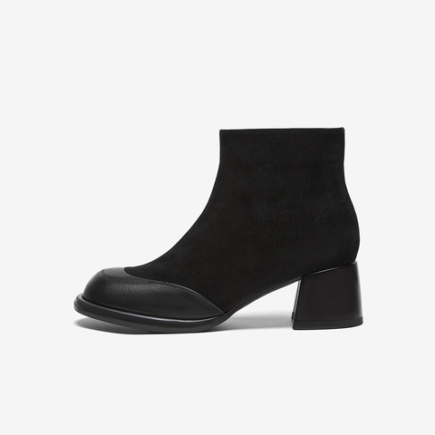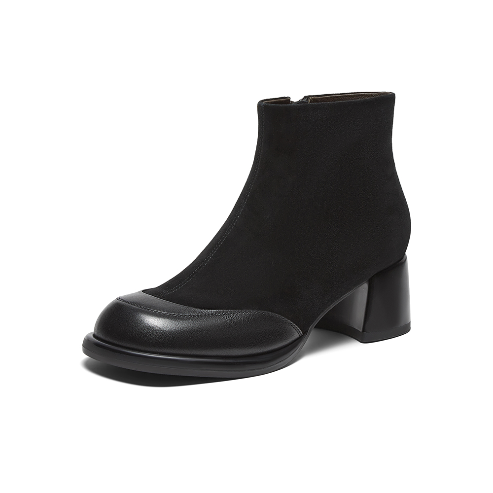 百思图2024冬季新款商场同款简约通勤时装靴粗跟女短靴BN365DD4