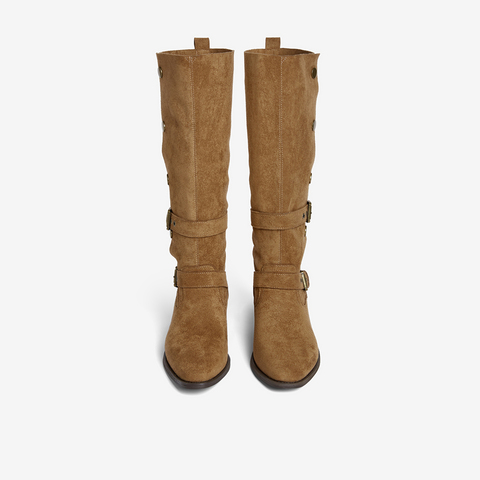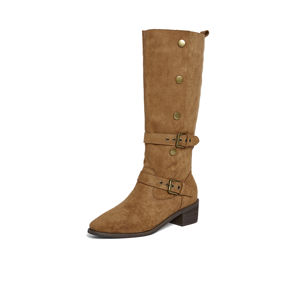 百思图2025冬季新款西部靴时尚复古潮流粗跟女长靴BP035DG5