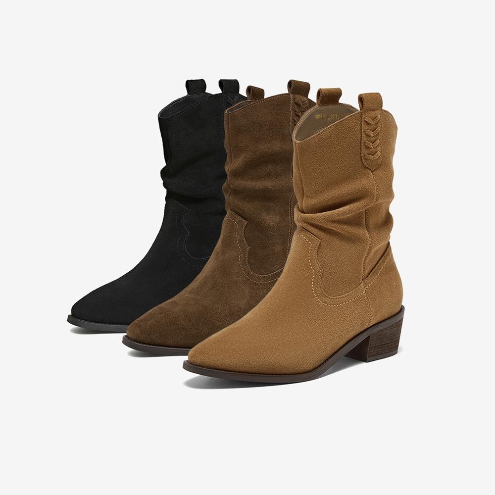 百思图2025冬季新款西部靴时尚复古潮流粗跟尖头女中靴BP107DZ5