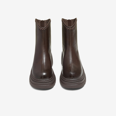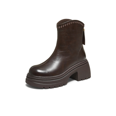 百思图2025冬季新款时装靴时尚简约户外通勤粗跟女中靴BP819DZ5