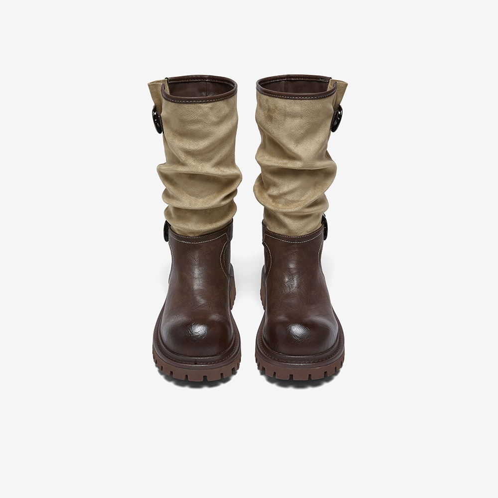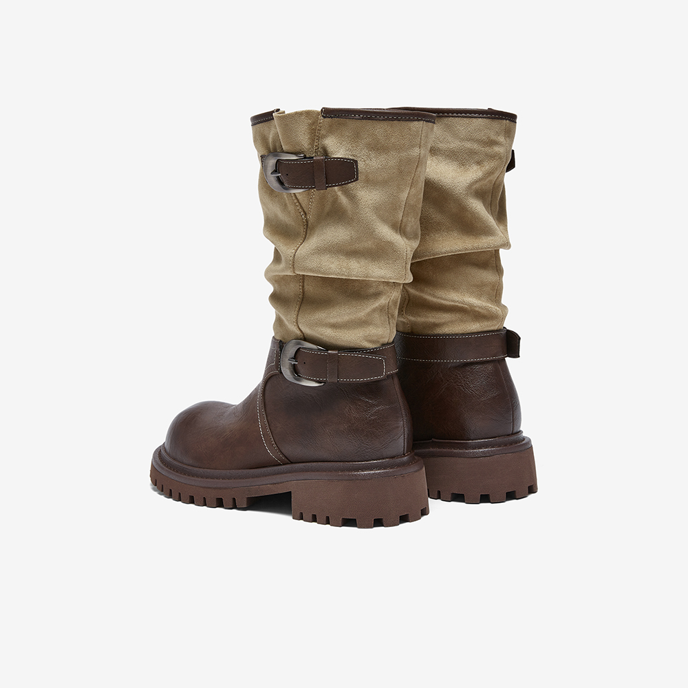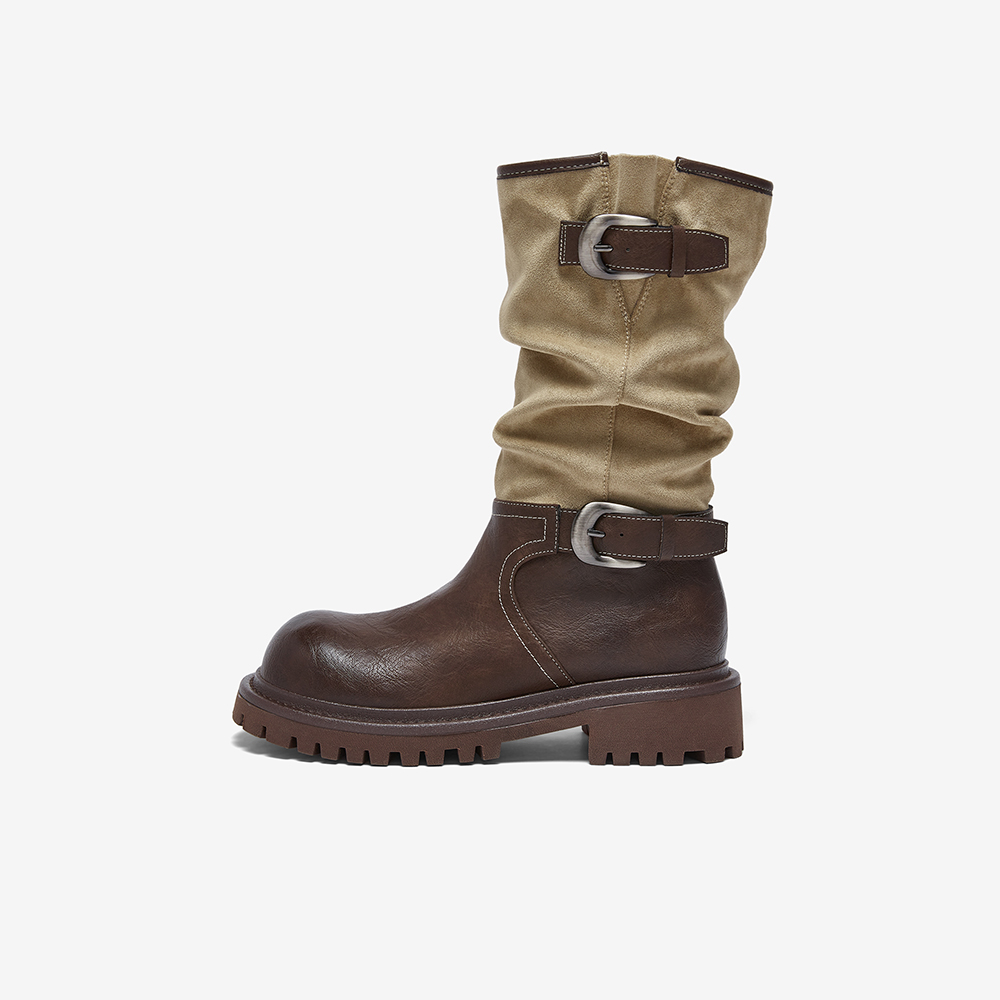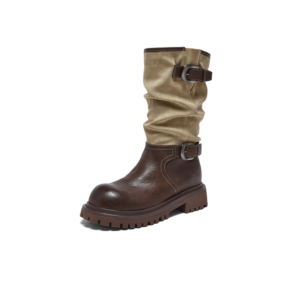 百思图2025冬季新款西部靴时尚复古潮流粗跟女中靴BP996DZ5