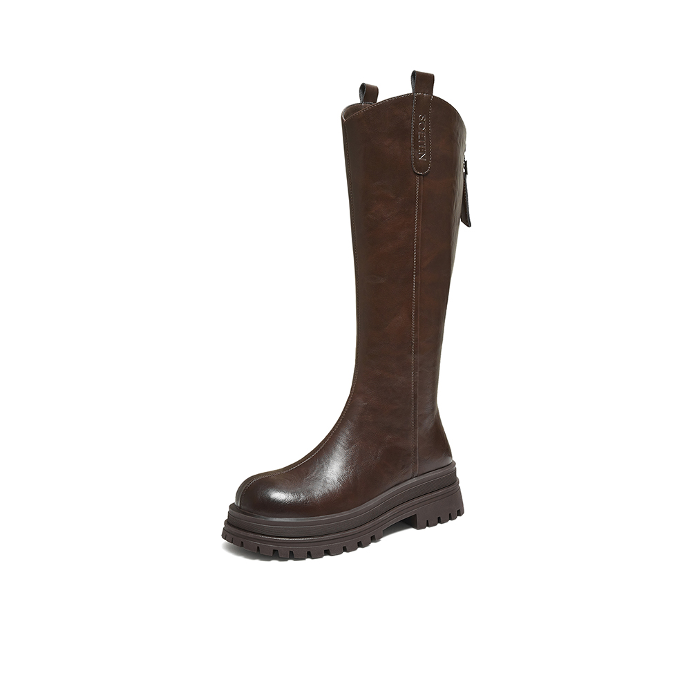 百思图2025冬季新款商场同款骑士靴时尚潮流街头女长靴BV016DG5
