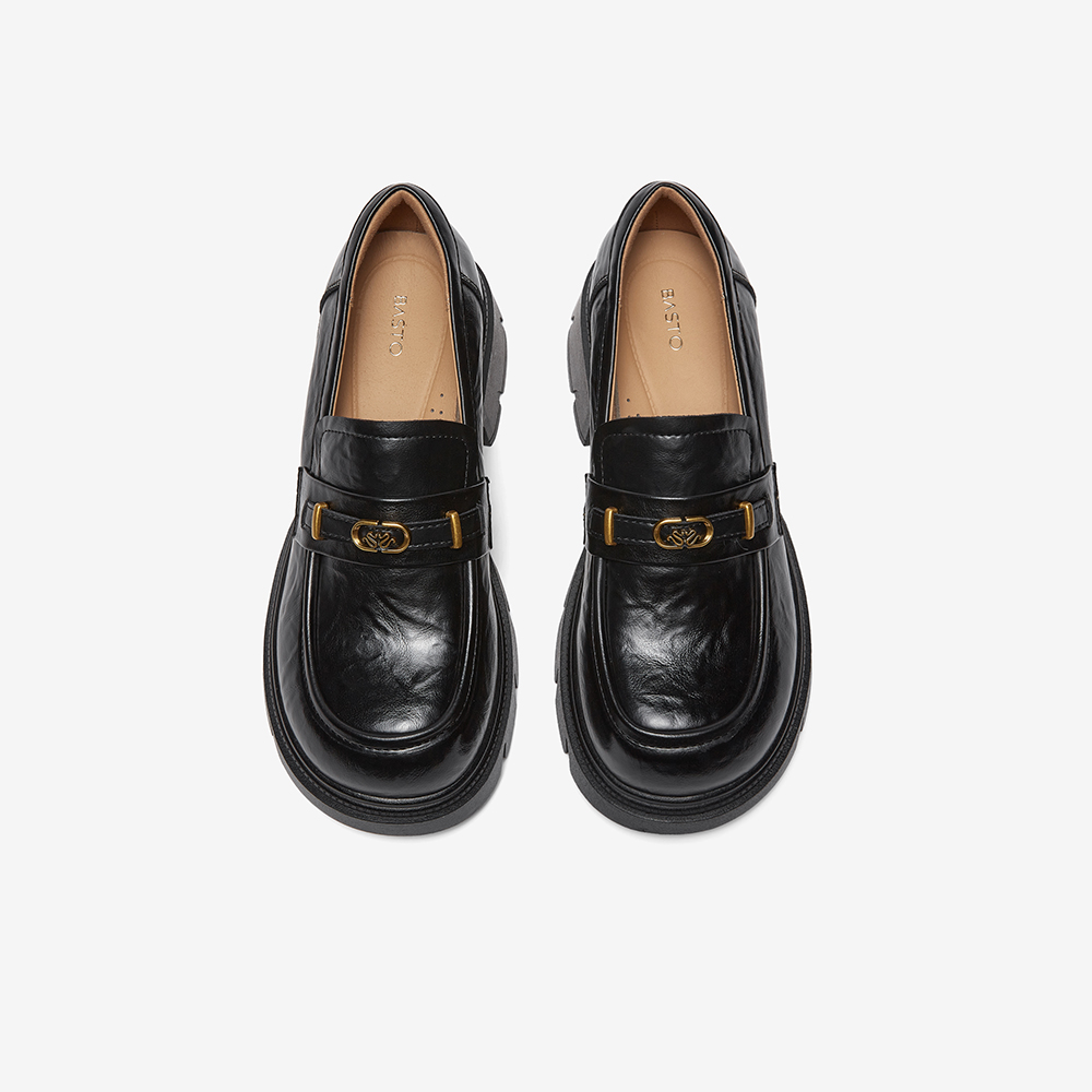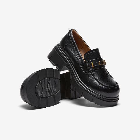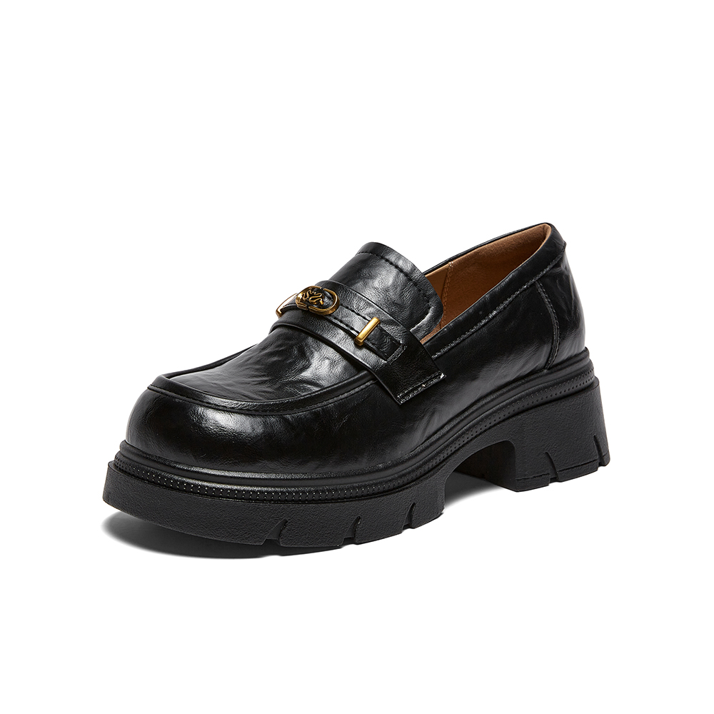 百思图2026春季新款商场同款乐福鞋时髦复古学院女单鞋BV021AA6
