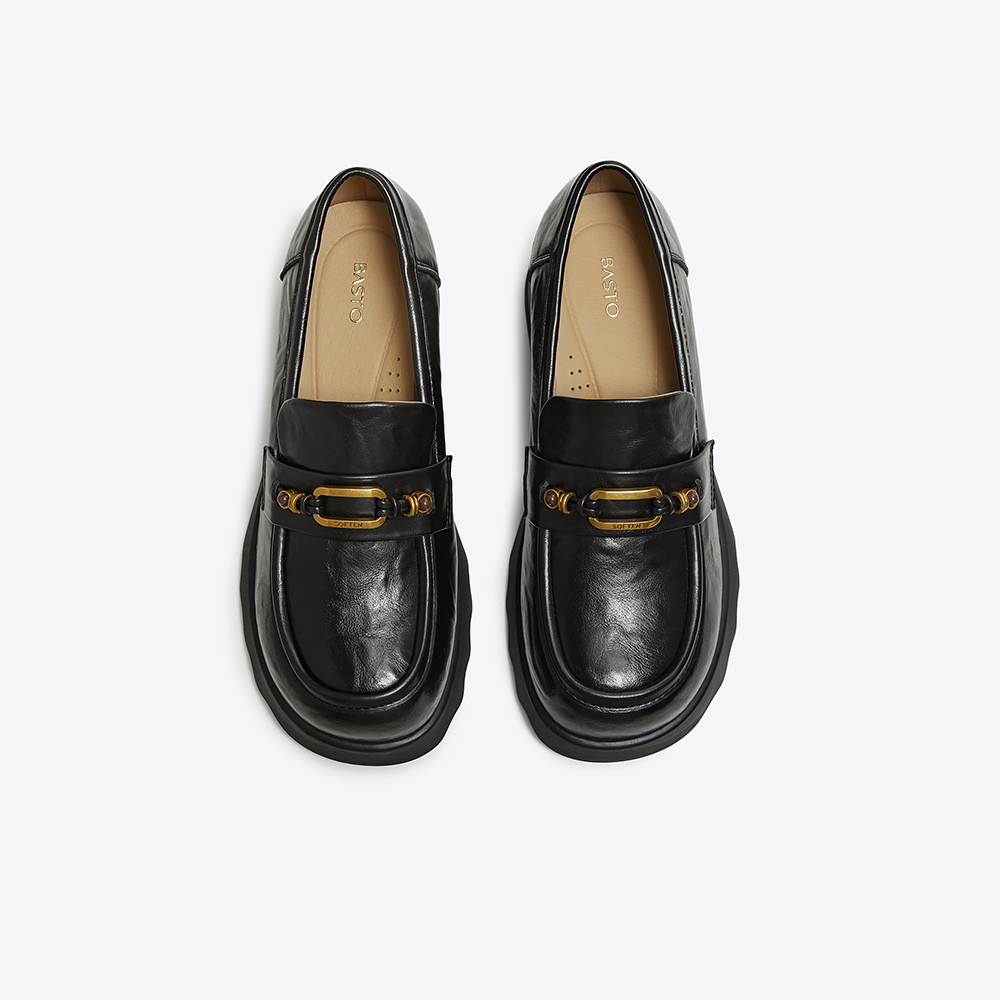 百思图2026春季新款商场同款乐福鞋时尚潮流粗跟女单鞋BV710AA6