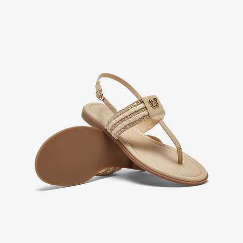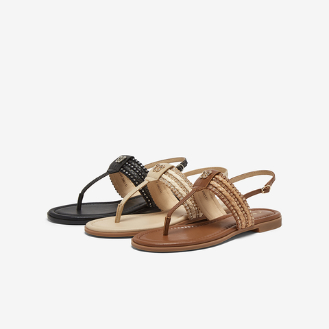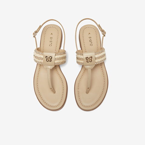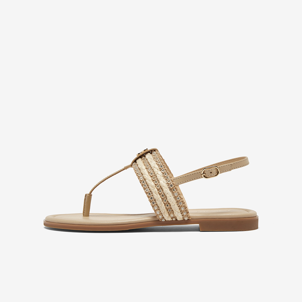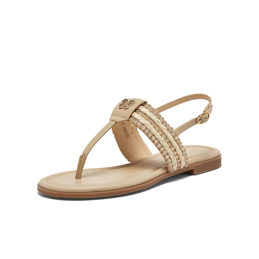 百思图2025夏季新款时尚复古户外休闲一字带夹趾女凉鞋C2107BL5