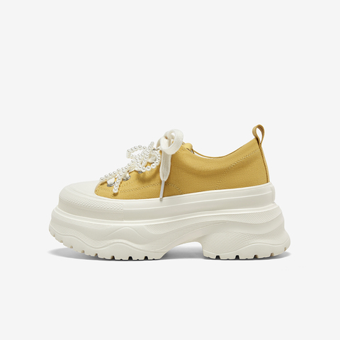 百思图2025秋季新款帆布鞋街头潮流厚底增高女休闲鞋D3175CM5
