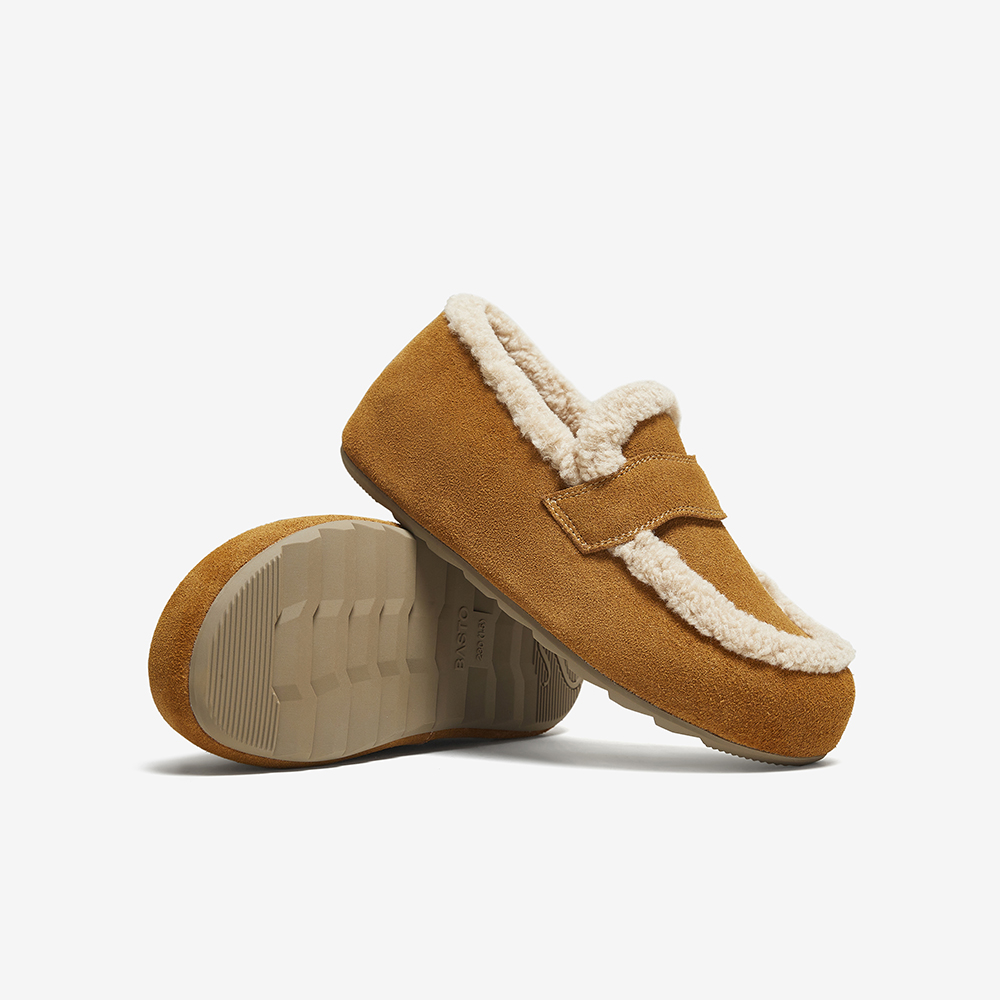 百思图2025冬季新款勃肯鞋时尚复古休闲加绒保暖女单鞋D3505DM5