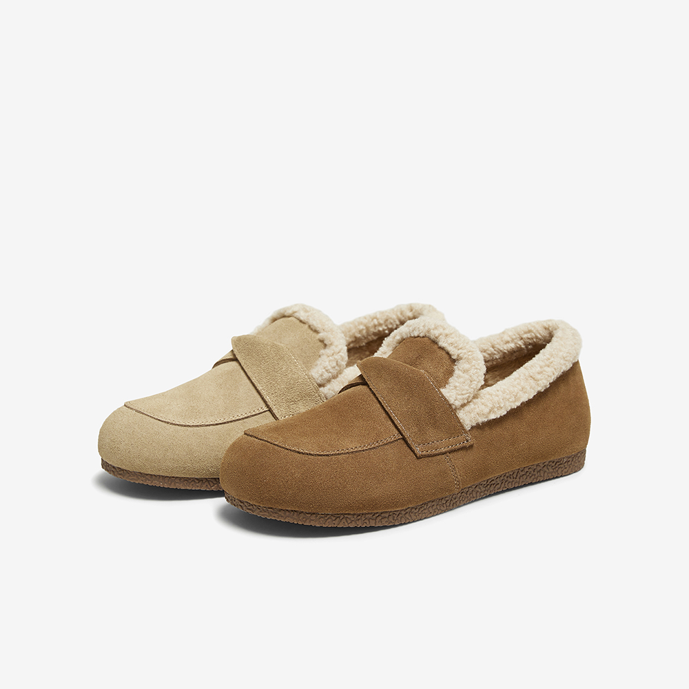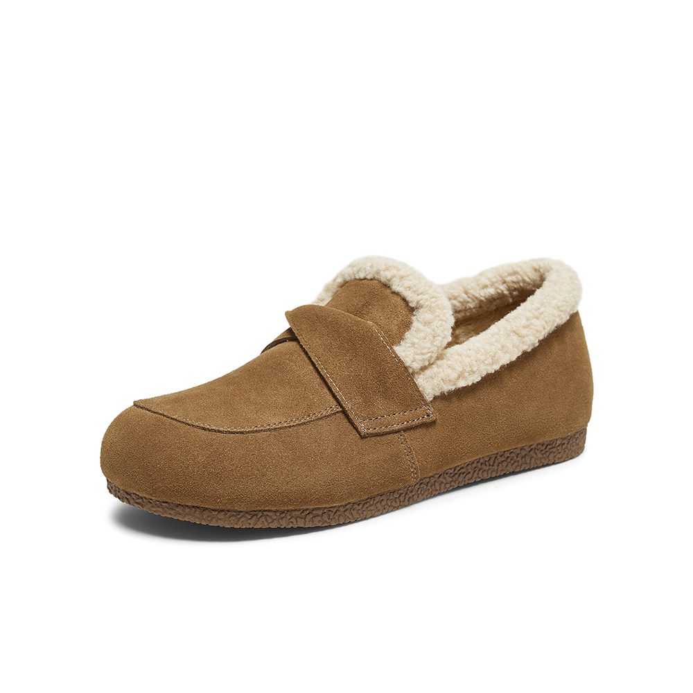 百思图2025冬季新款乐福鞋时尚休闲加绒保暖女单鞋D3509DM5