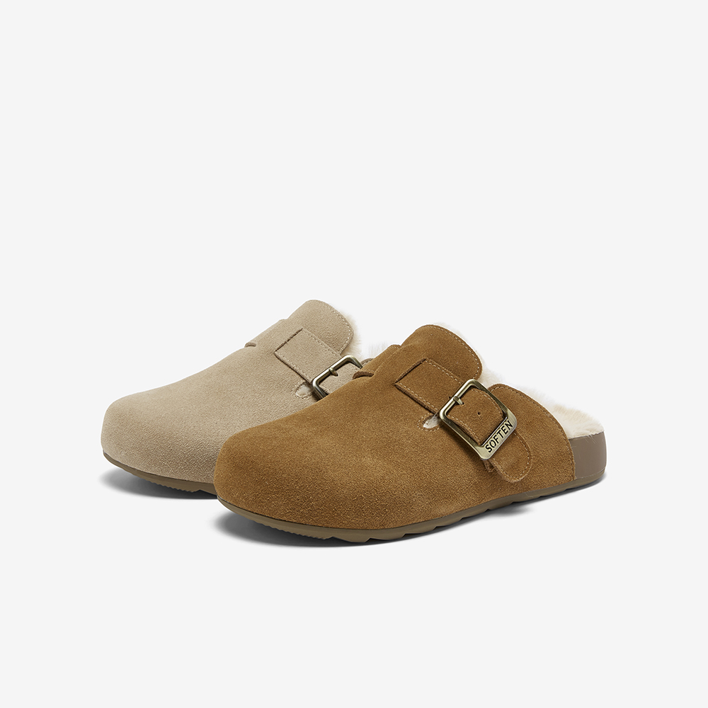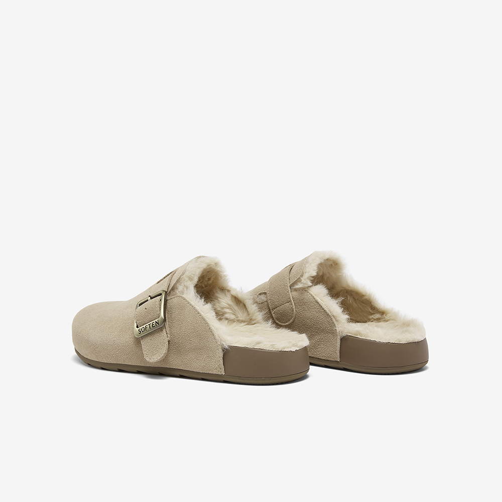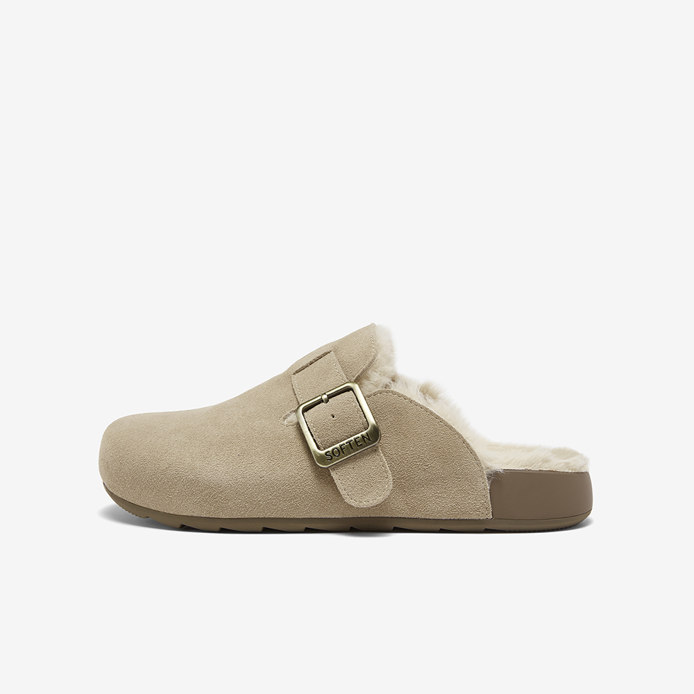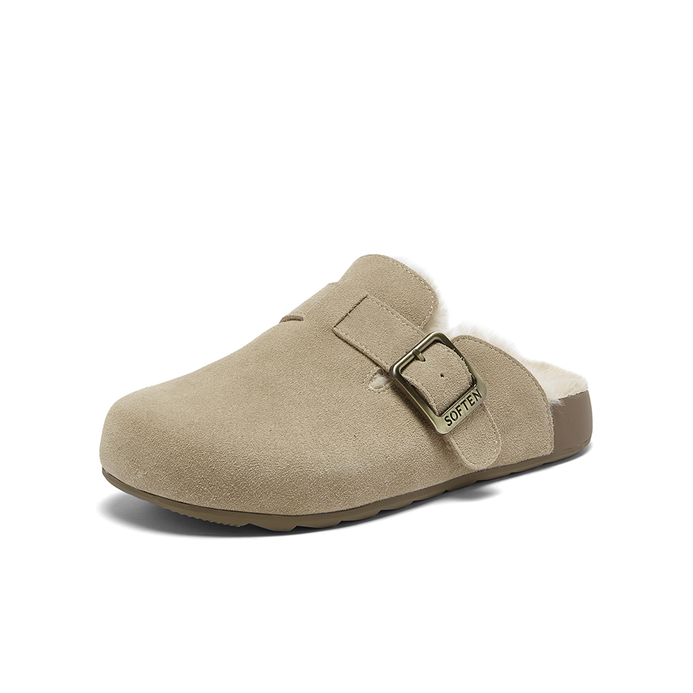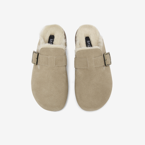 百思图2025冬季新款勃肯鞋时尚复古休闲加绒保暖女拖鞋D3788DH5