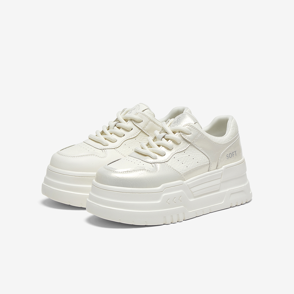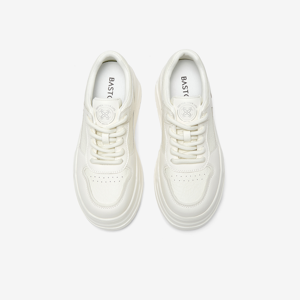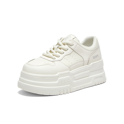 百思图2025春季新款时尚简约街头运动小白鞋厚底女休闲鞋D7703AM5