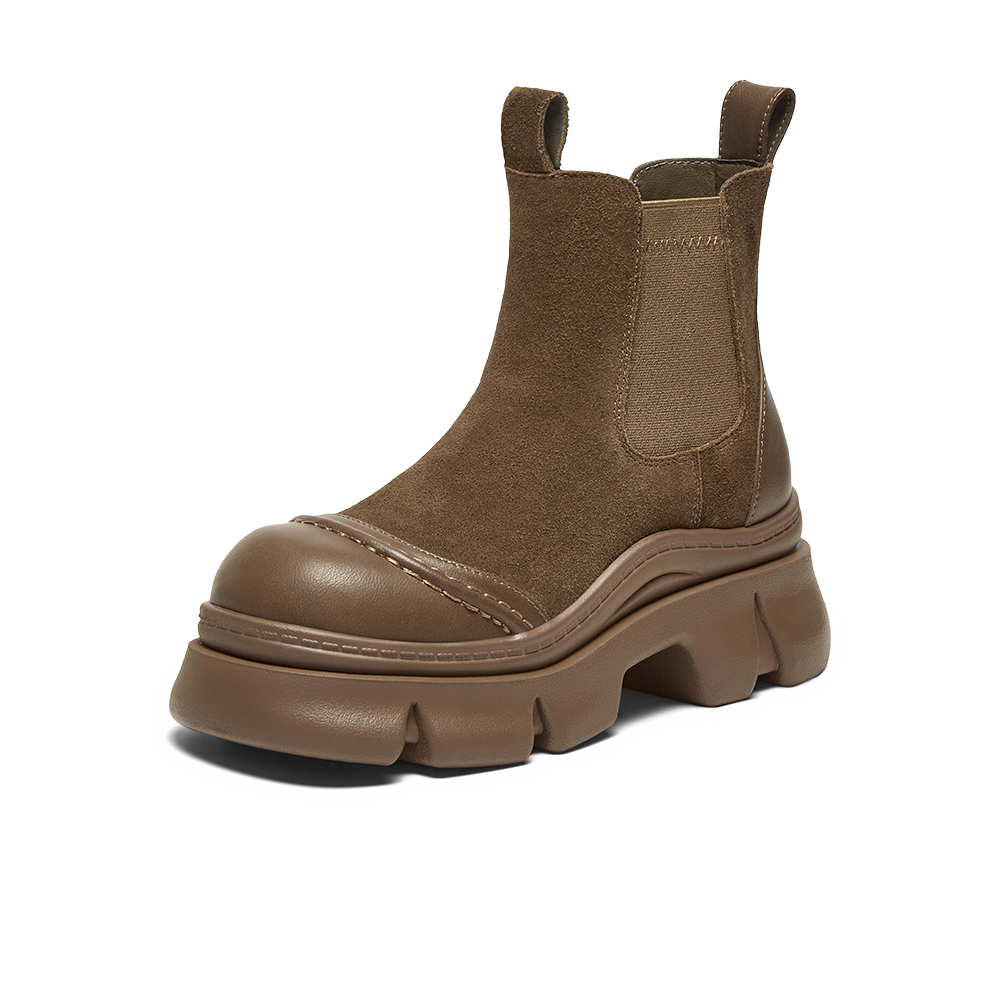百思图2024冬季新款商场同款时髦通勤烟筒靴厚底女短靴E1551DD4