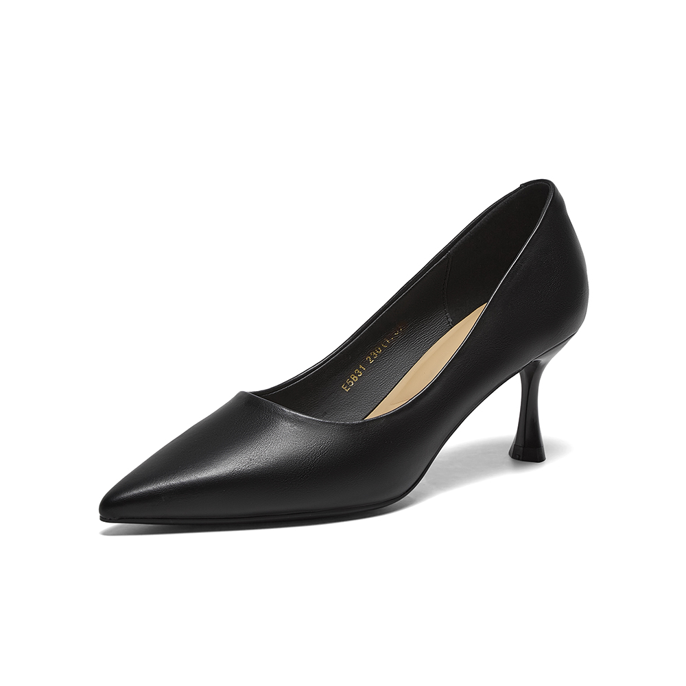 百思图2025春季新款商场同款简约通勤细高跟尖头女单鞋E5831AQ5