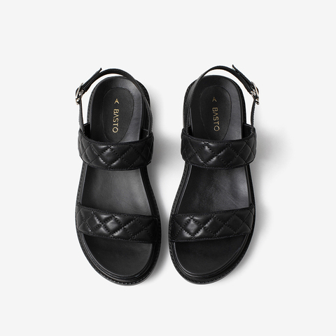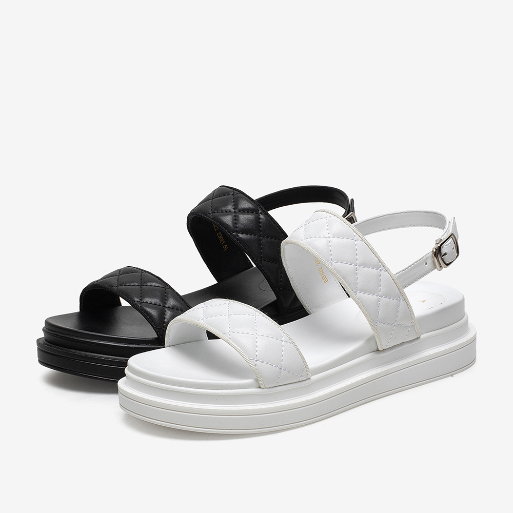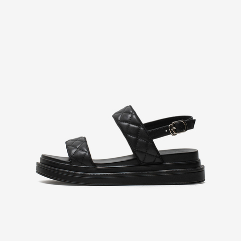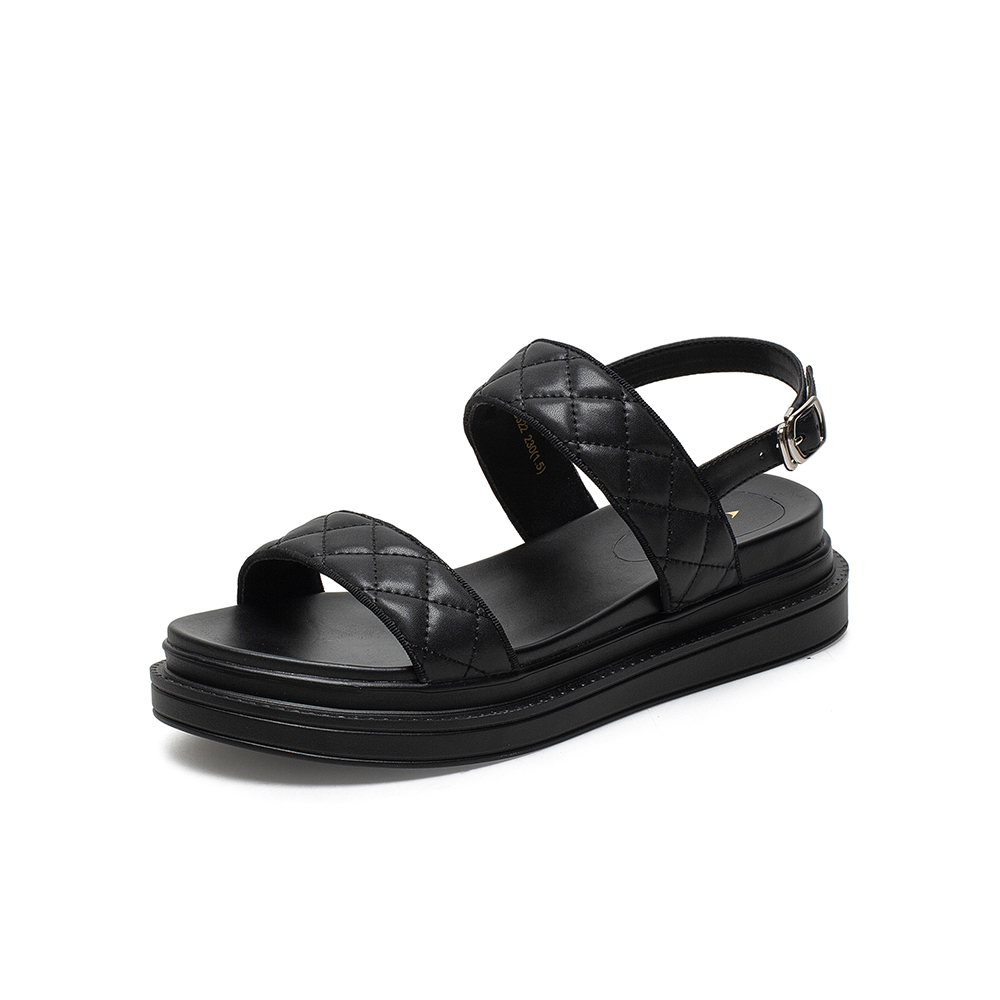 百思图2021夏季新款时尚网红运动凉鞋菱格纹厚底女凉鞋EB322BL1