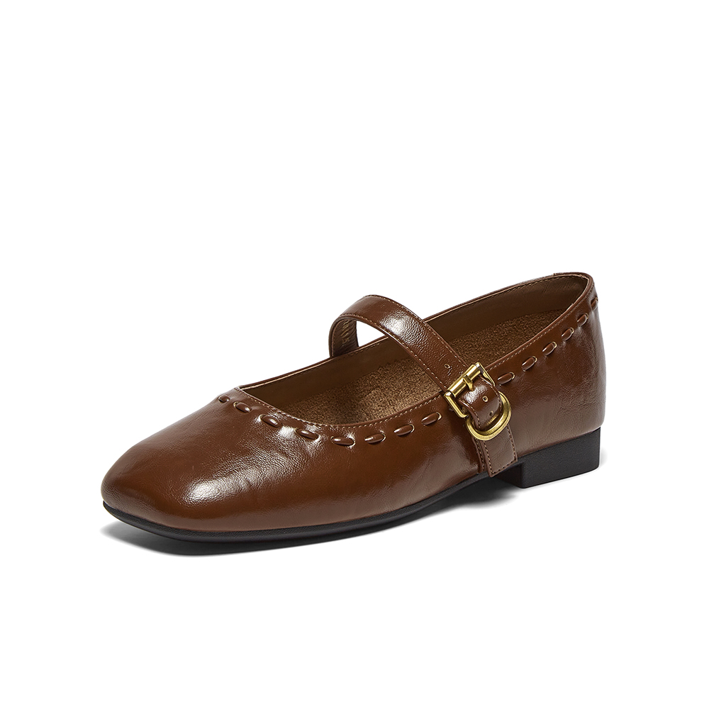 百思图2025秋季新款玛丽珍鞋时尚简约复古方头浅口女单鞋F0111CQ5