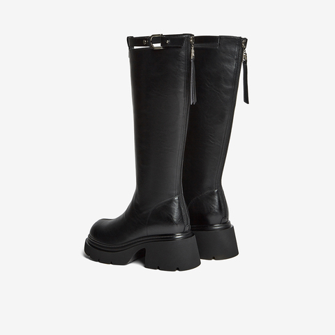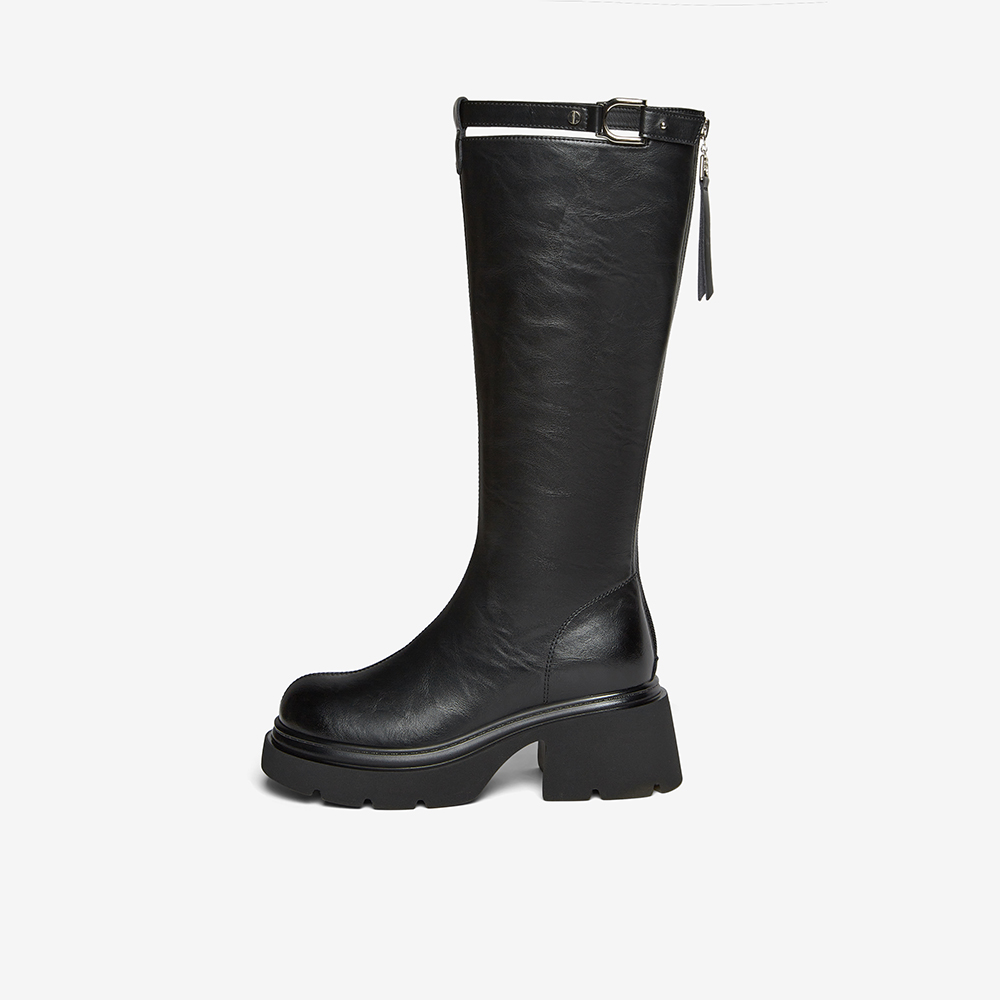 百思图2025冬季新款商场同款骑士靴时尚街头潮流女长靴F1711DG5