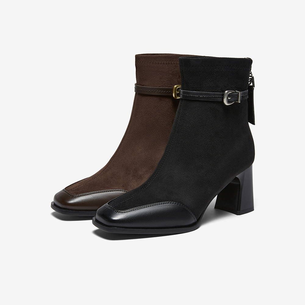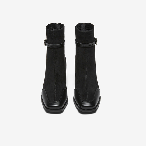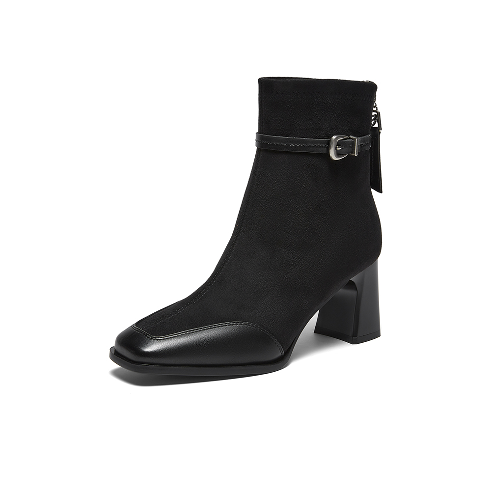百思图2025冬季新款商场同款时装靴时尚粗高跟女短靴F2178DD5