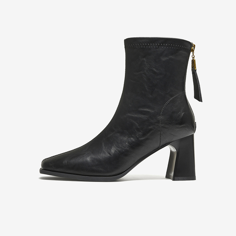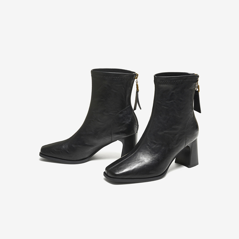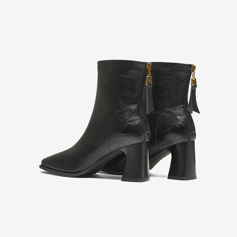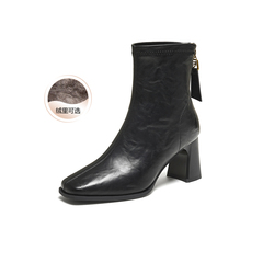百思图2025冬季新款商场同款时装靴时尚通勤粗跟女短靴F5217DD5