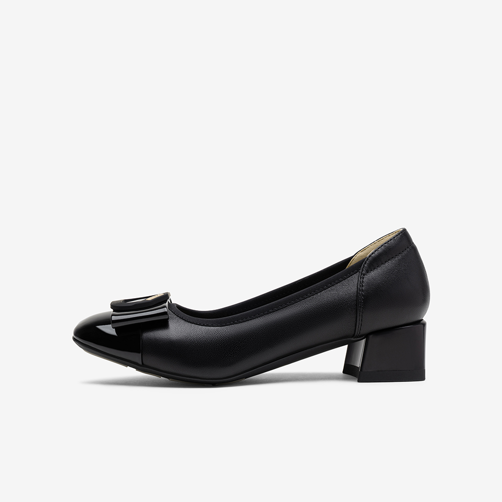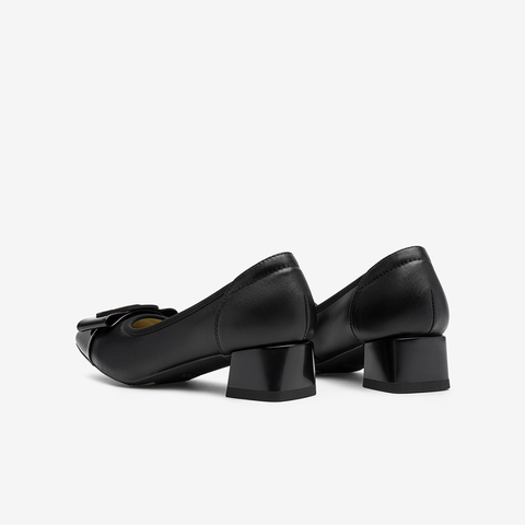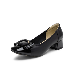 百思图2025秋新款商场同款浅口单鞋时尚简约通勤粗跟女鞋K3080CQ5