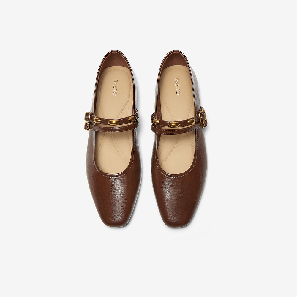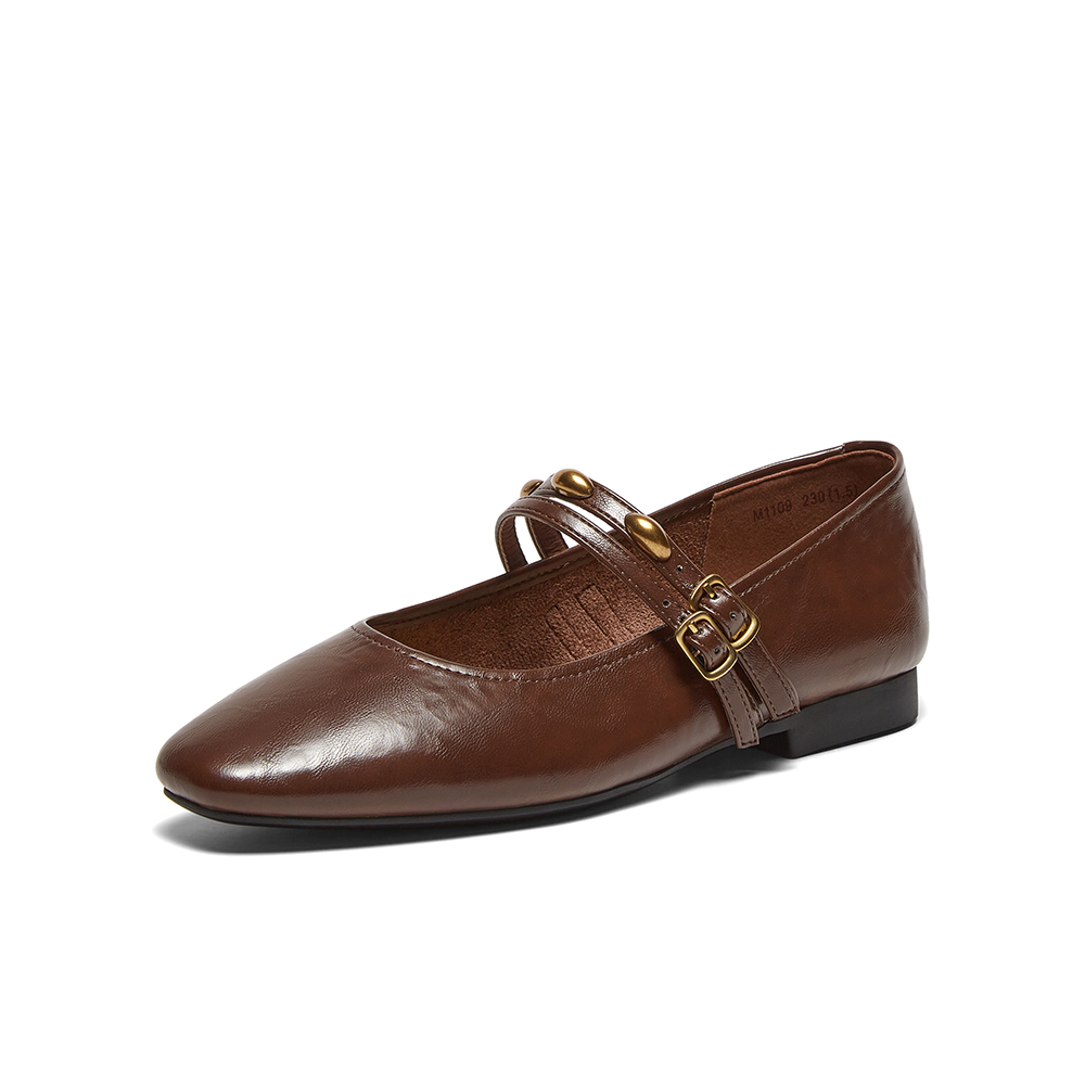 百思图2025春季新款商场同款简约复古玛丽珍鞋方头女单鞋M1109AQ5