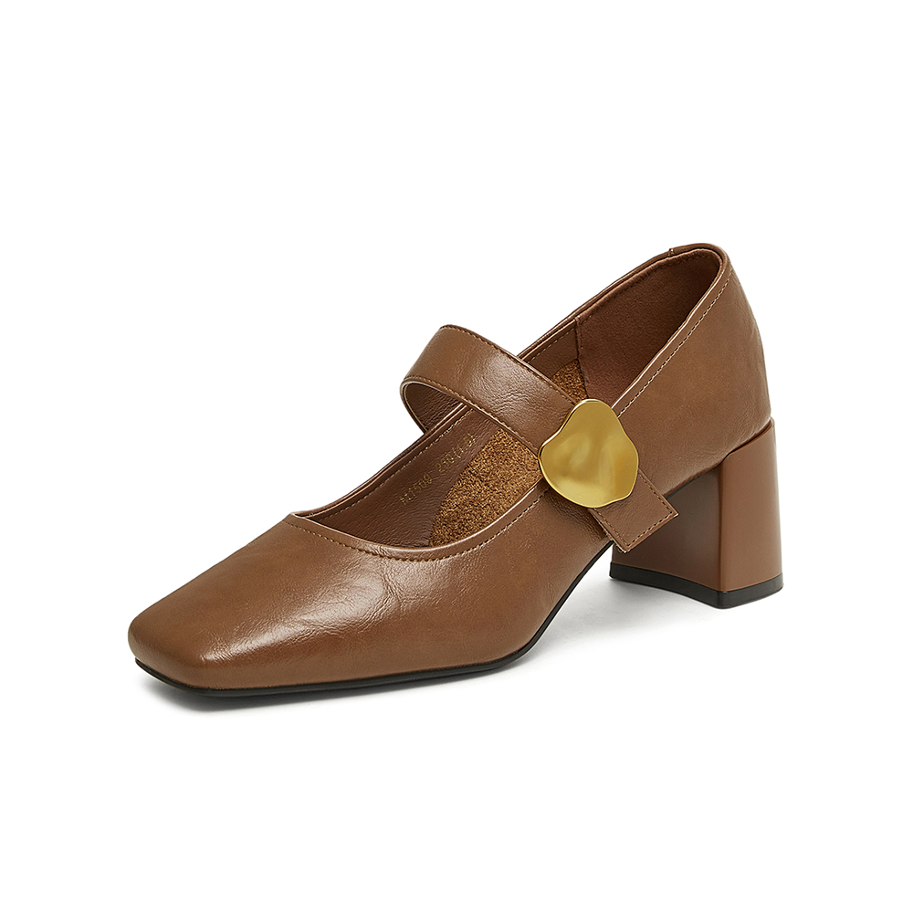 百思图2025春季新款时尚复古玛丽珍鞋粗跟方头女单鞋M1509AQ5