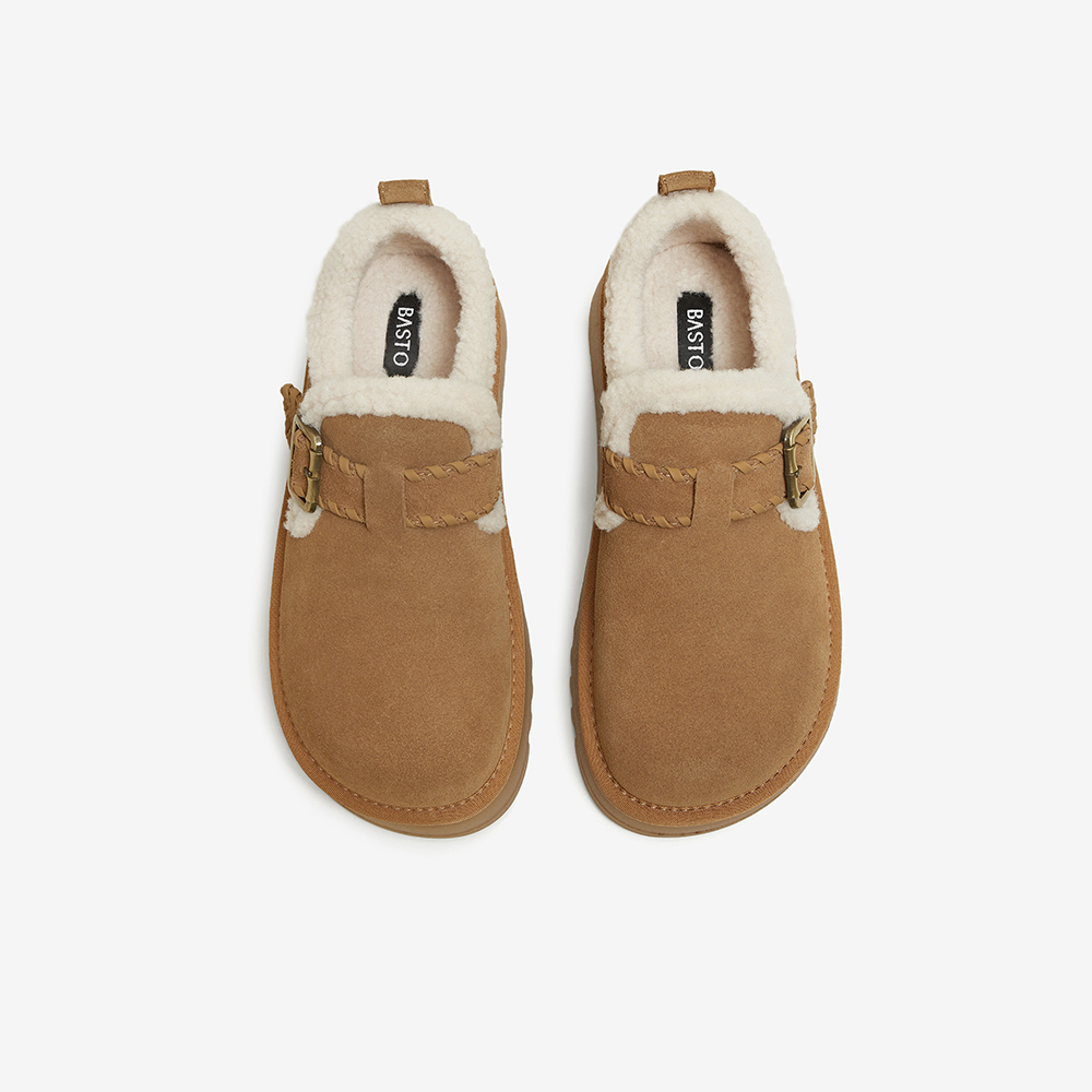 百思图2025冬季新款毛毛鞋时尚休闲加绒厚底女鞋N8079DM5