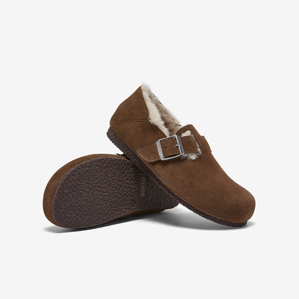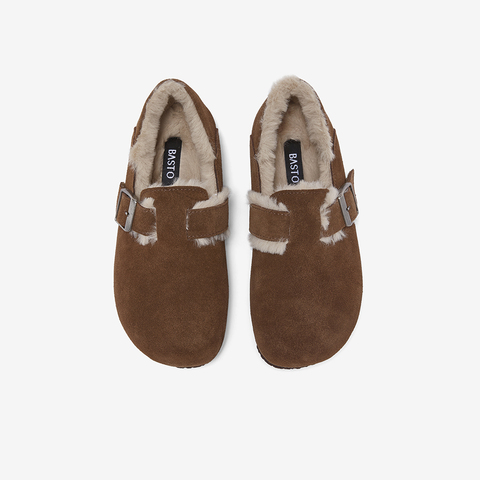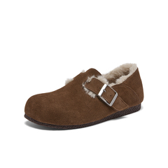 百思图2025冬季新款勃肯鞋时尚复古休闲加绒保暖女单鞋P8301DM5