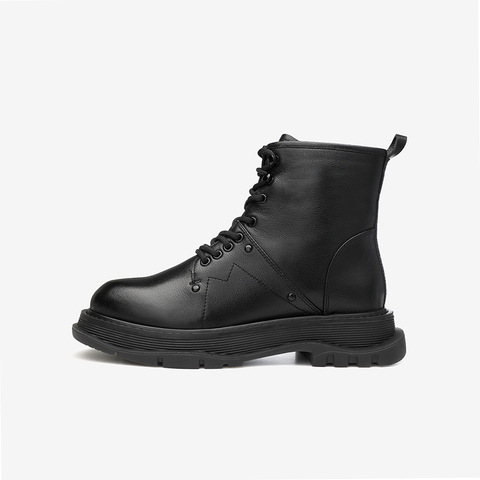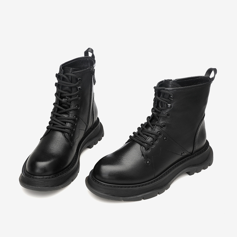 百思图2020冬季新款商场同款英伦休闲绑带马丁靴女皮短靴RAB44DD0