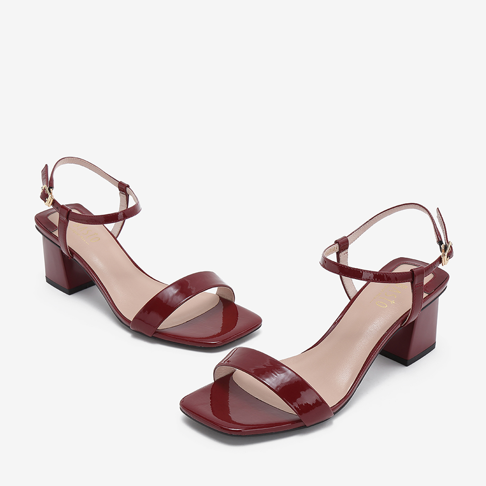 BASTO/百思图夏季专柜同款酒红色双色漆牛皮革休闲女皮凉鞋RVE17BL9