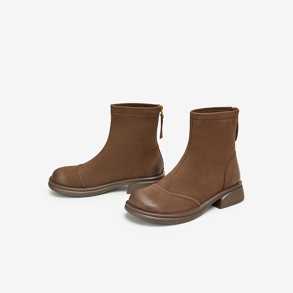 百思图2024冬季新款商场同款简约时尚时装靴粗跟女短靴S5561DD4