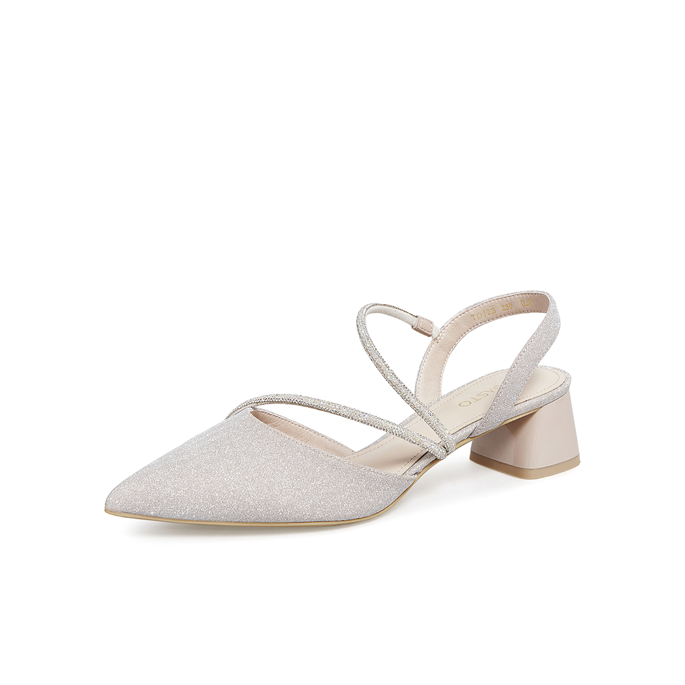 百思图2021夏季新款商场同款时髦气质粗跟尖头亮钻凉鞋女TDJ23BH1