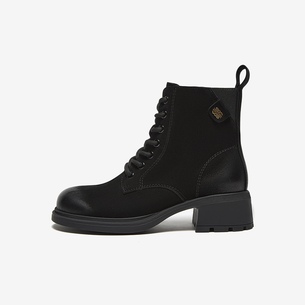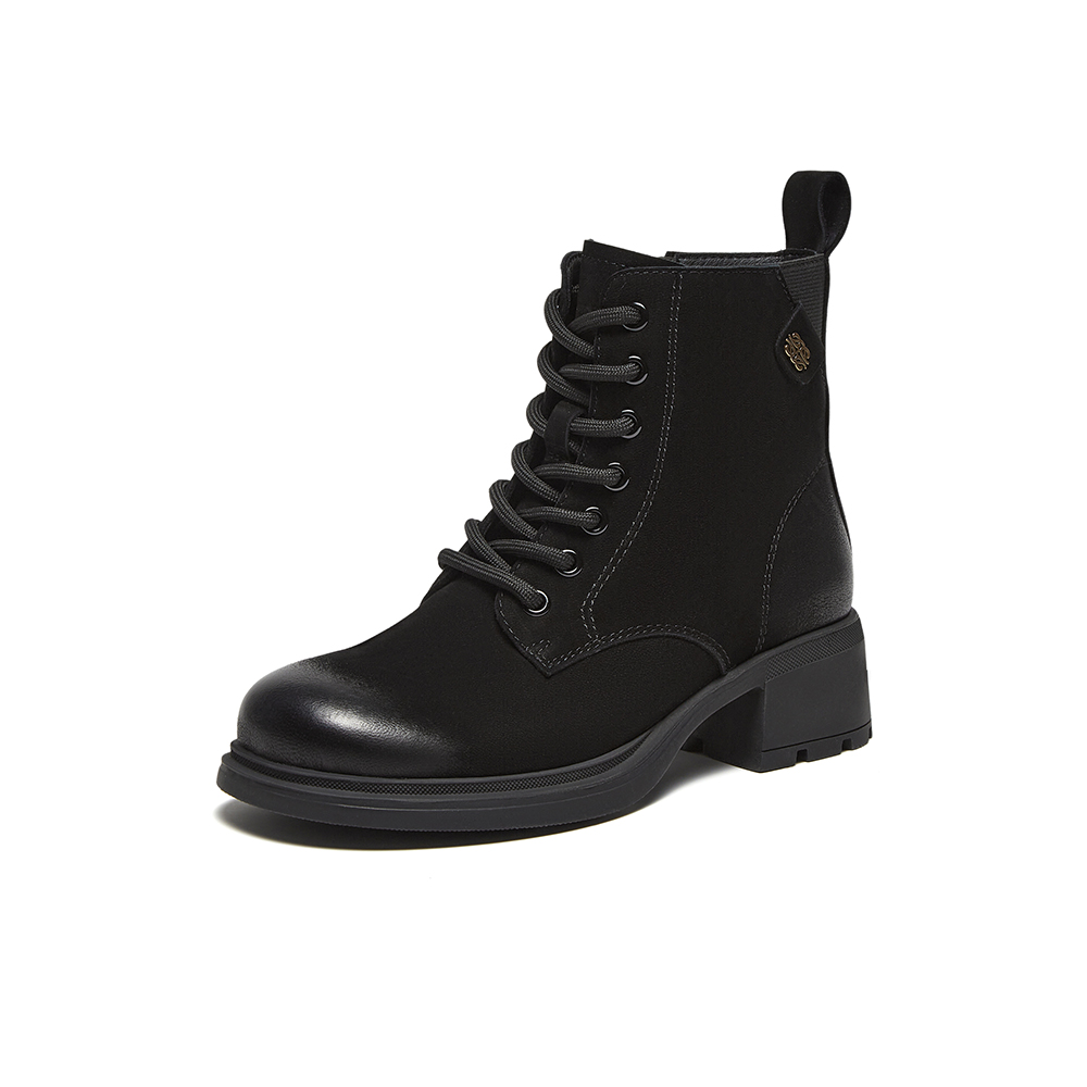 百思图2024冬季新款商场同款简约时尚马丁靴粗跟女短靴U5121DD4