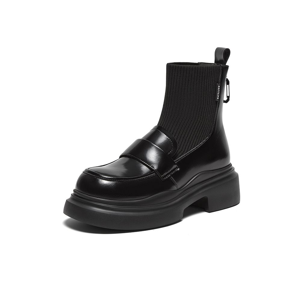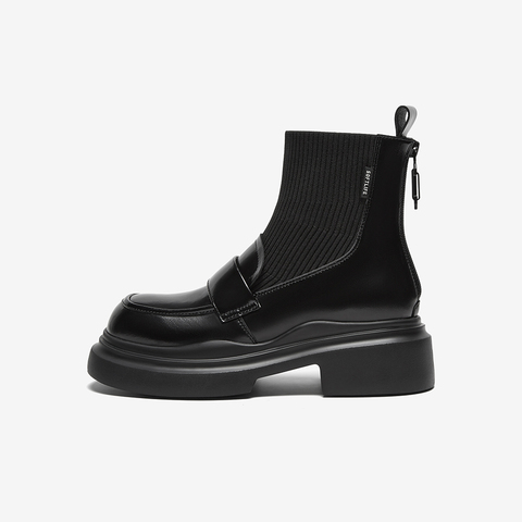 百思图2024冬季新款商场同款时尚学院风袜靴粗跟女短靴UHT01DD4