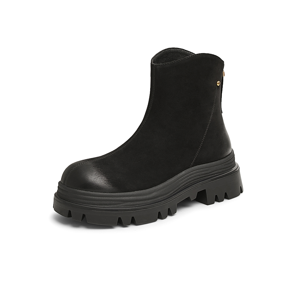 百思图2024冬季新款商场同款时髦通勤时装靴粗跟女短靴ULU05DD4