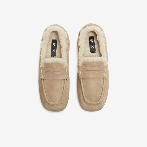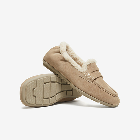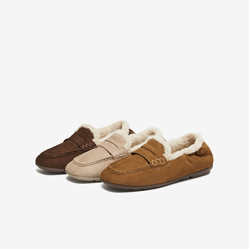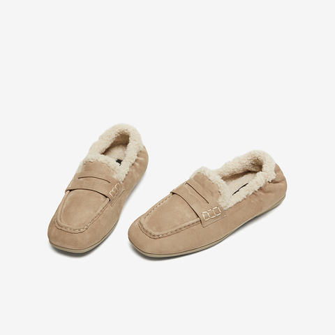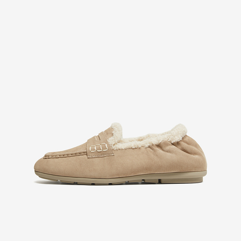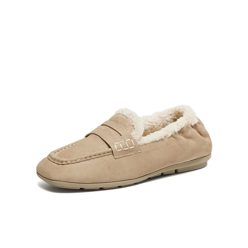 百思图2025冬季新款乐福鞋时尚复古休闲加绒保暖女单鞋UXE06DA5