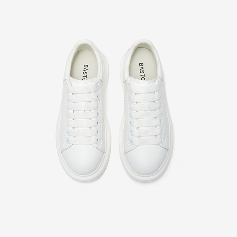 百思图2025春季新款时尚户外运动小白鞋厚底圆头女休闲鞋V0121AM5
